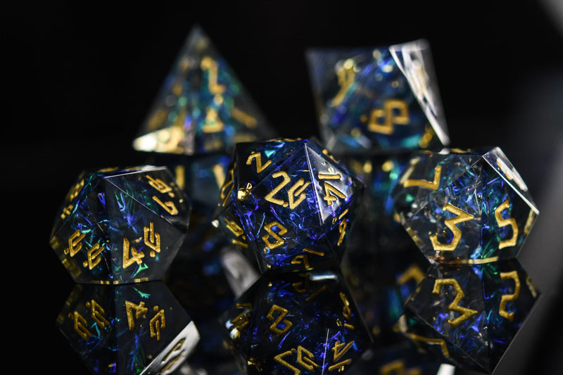 Hand-crafted from beginning to end, our sharp-edged resin dice feature gorgeously hand-painted numbers. These dice are ideal for any tabletop RPG game and are sure to impress at your upcoming session!