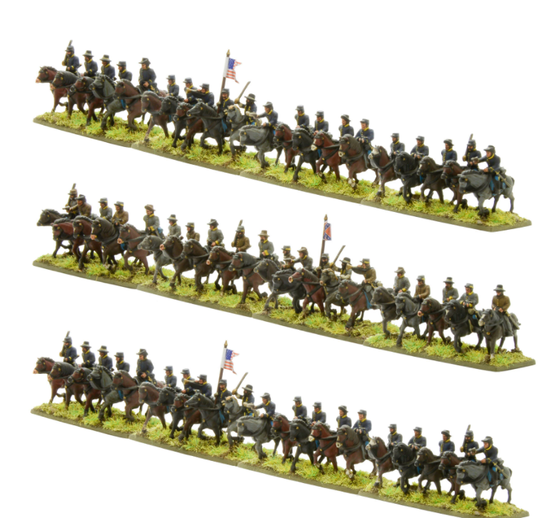The Cavalry Brigade box contains three cavalry regiments to supplement your Union or Confederate forces as you clash across the American continent.