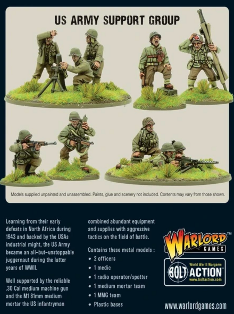 The Americans were equipped with an excellent medium machine gun: the Browning M1919A4 .30-cal. Because of its weight (31lbs), it was always used with a tripod. It had a rate of fire of 500 rounds per minute and an effective range of over 1,000 metres.